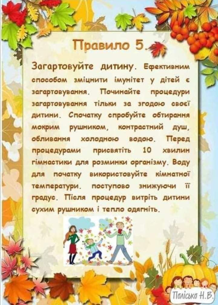 Зміцнюємо імунітет восени12.11.2022 Для батьків, Інформаційна відкритість, Новини, Сестра медична Поради від медичноі сестри –Світлани Іванівни Савчин Поширити: