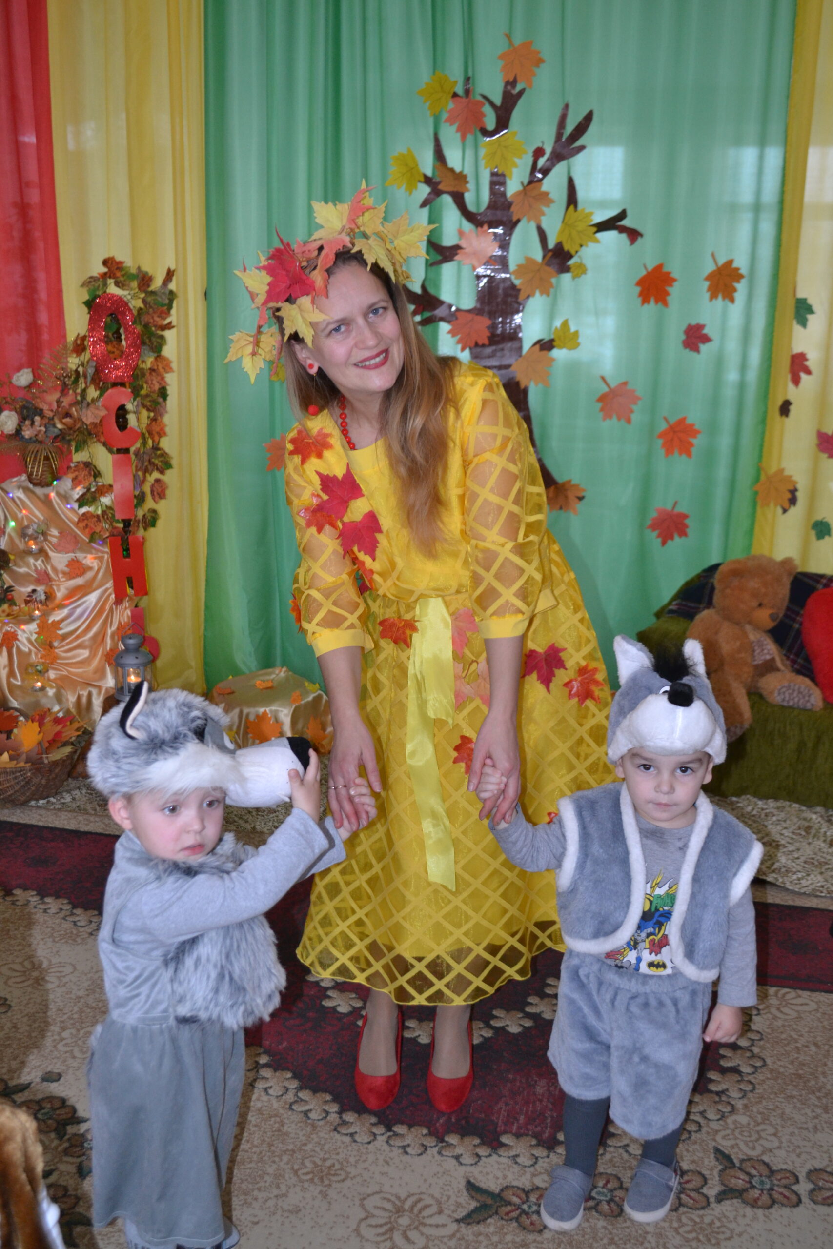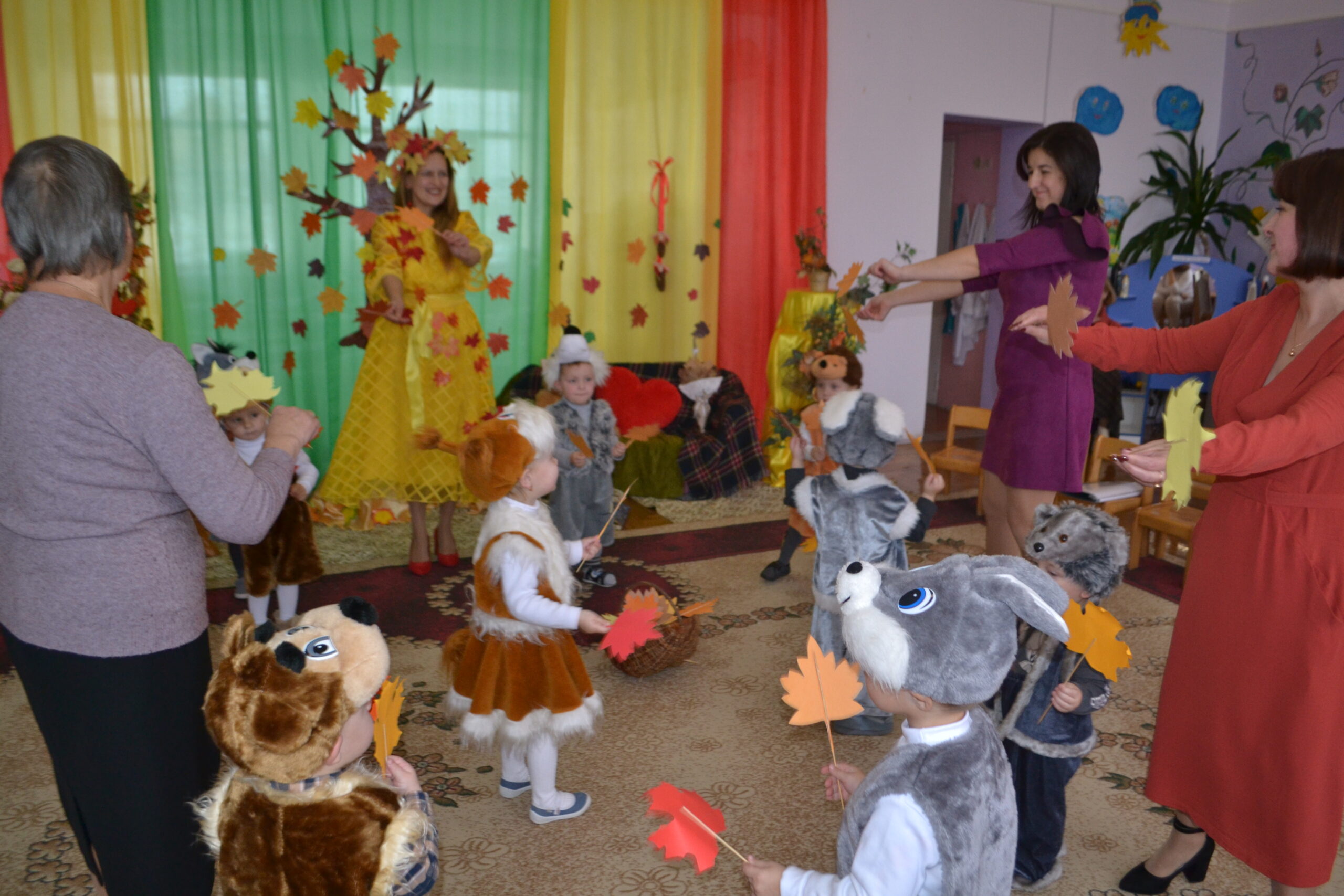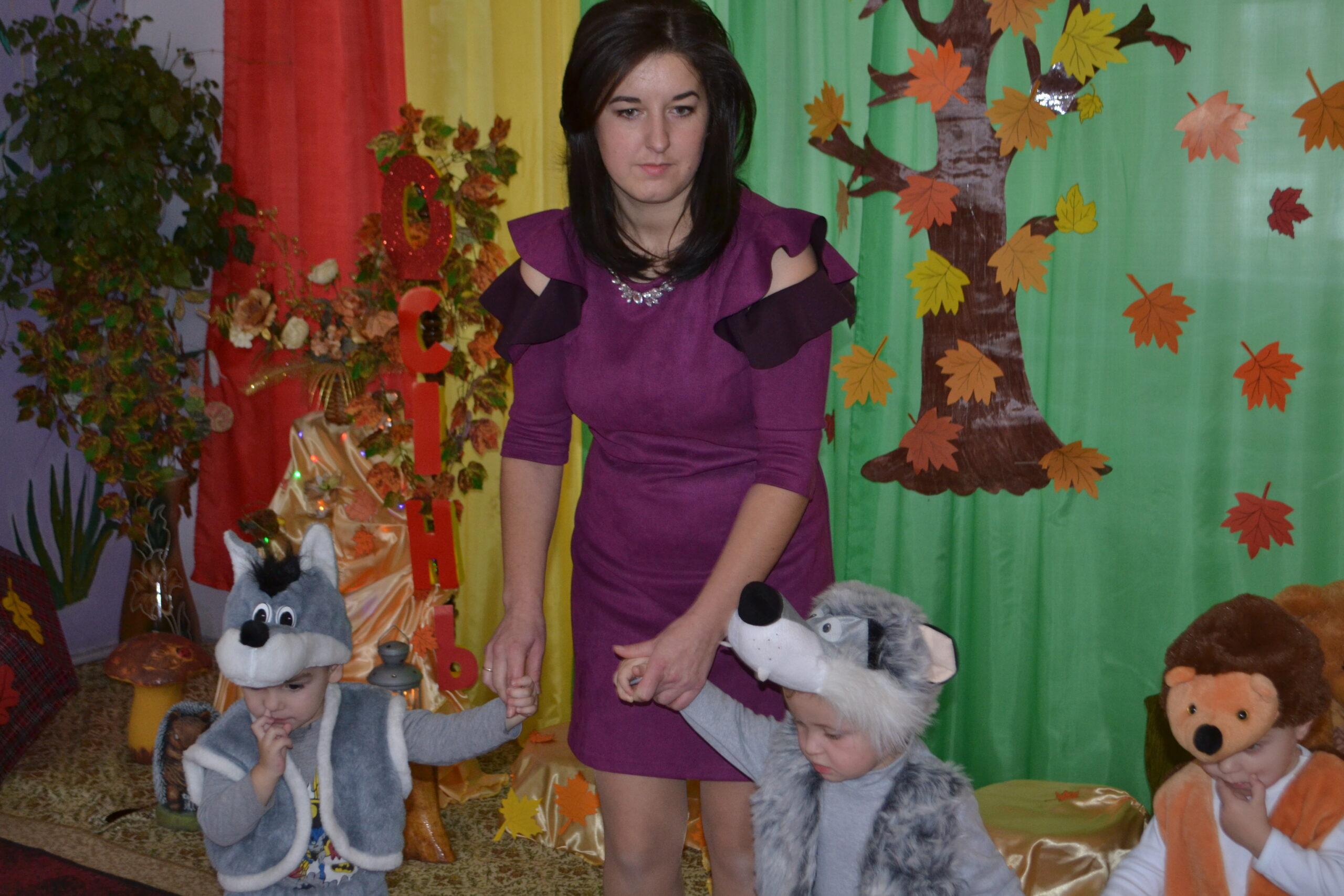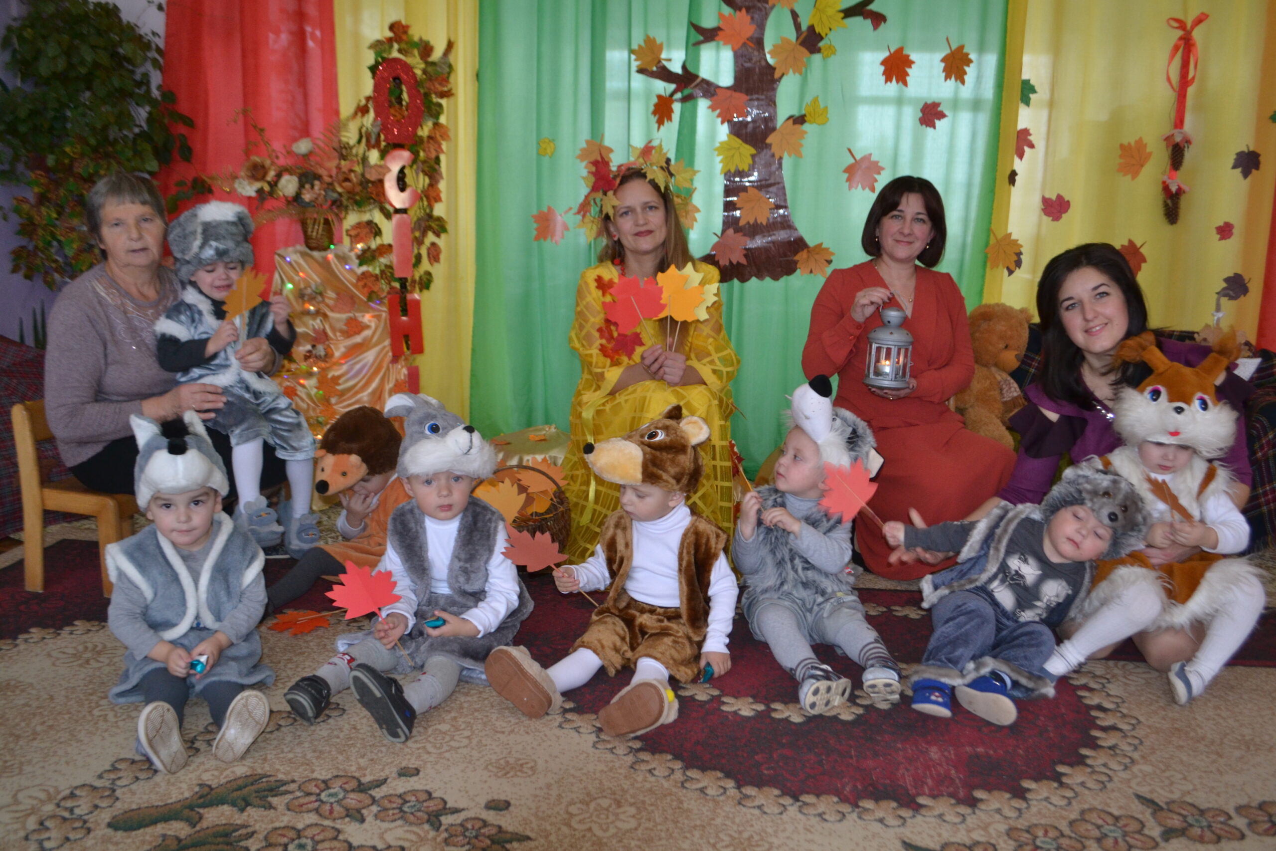 Вихователі Іванна Охнюк та Іванна Кузів, музичний керівник Леся Кіндракевич створили казкову атмосферу свята та поринули разом із малюками в осінній колорит в піснях і таночках.