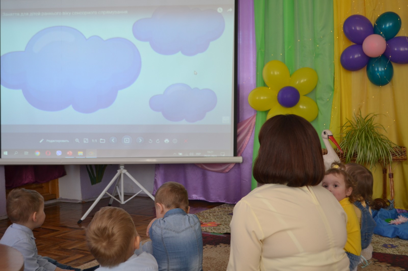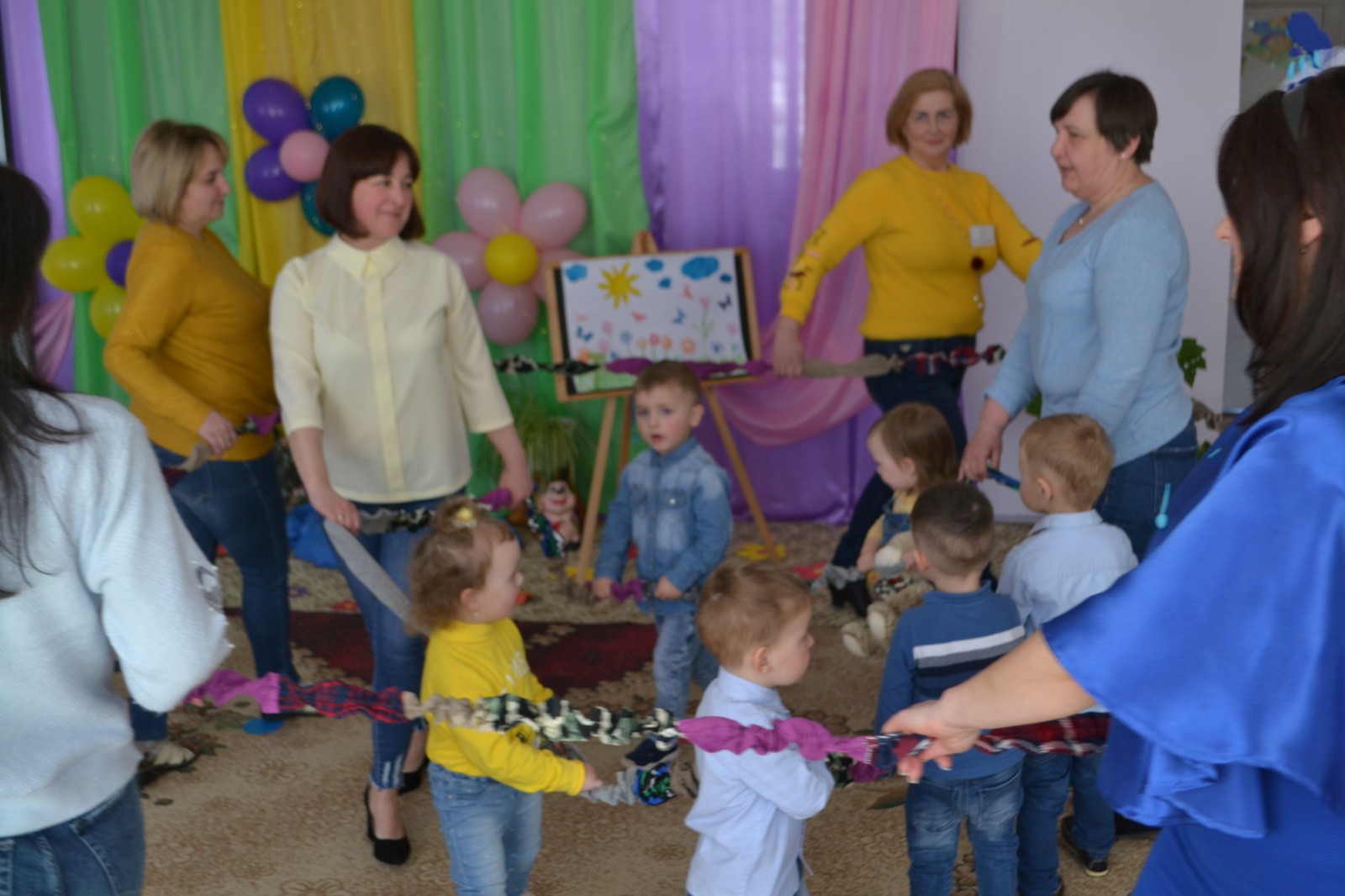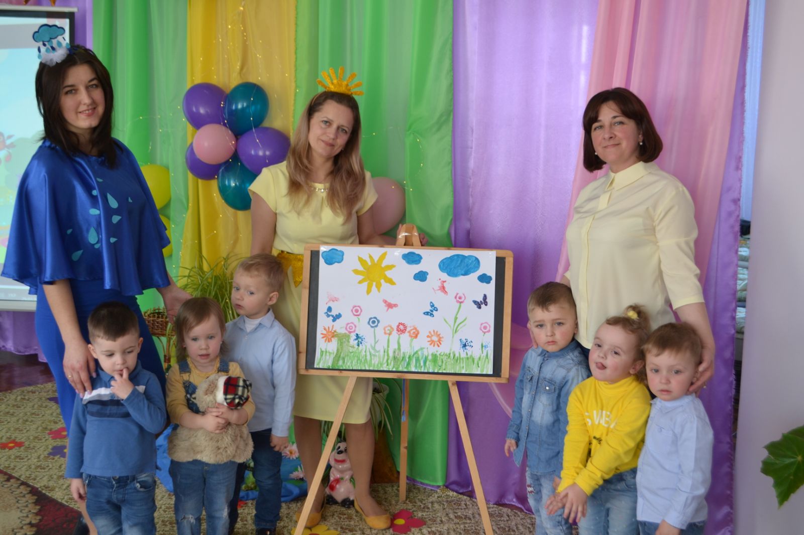 Казкові герої Хмаринка та Сонечко (ролі виконували Іванна Кузів та Мар’яна Мельницька) завітали до дітей на чарівну галявину. Малюки грали в цікаві ігри, переглядали мультфільми, танцювали, малювали, пізнавали навколишній світ.