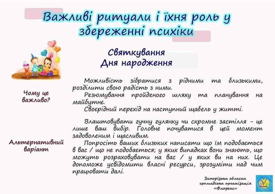 РИТУАЛИ І ТРАДИЦІЇ – ВАЖЛИВІ ПОМІЧНИКИ ПСИХІКИ