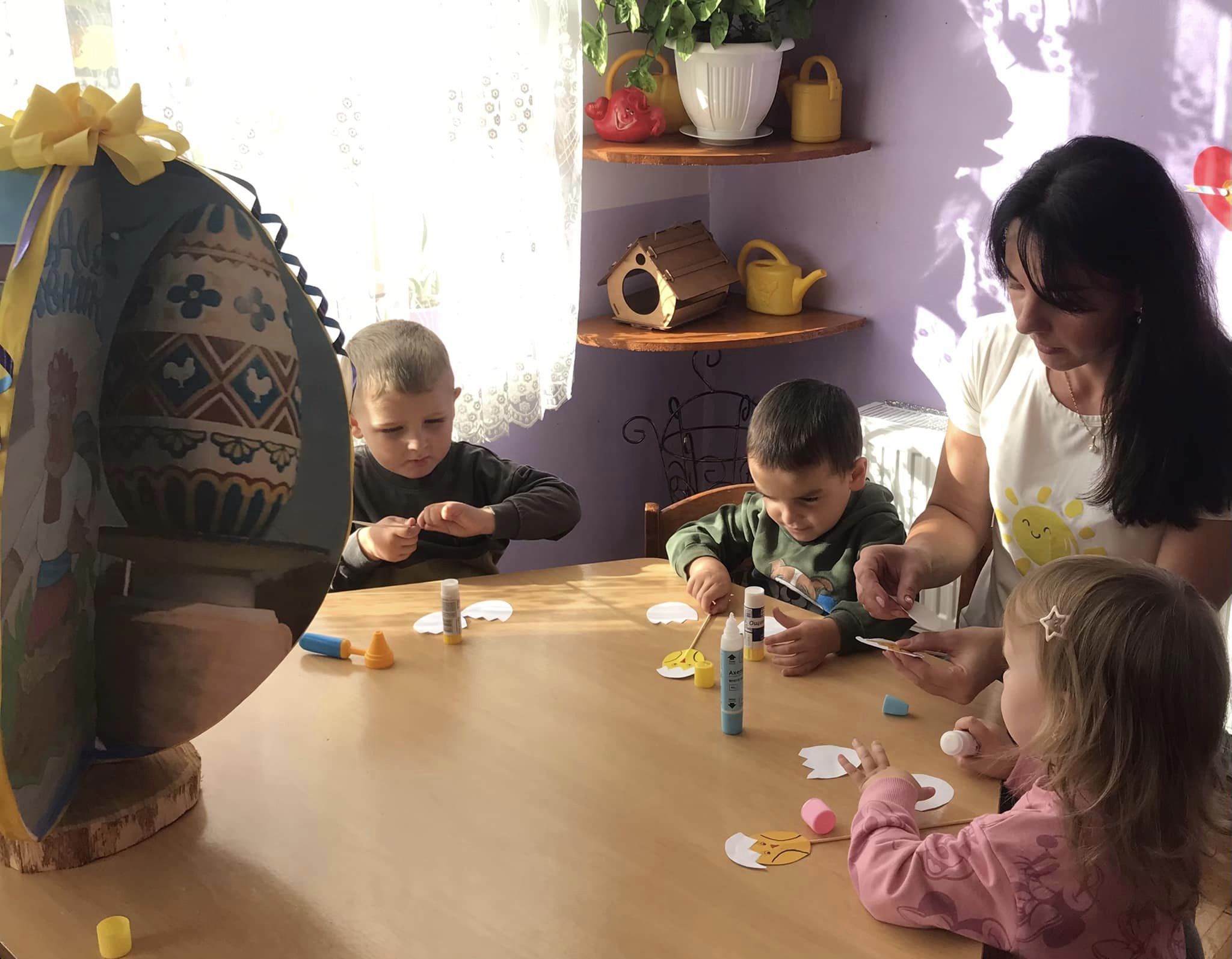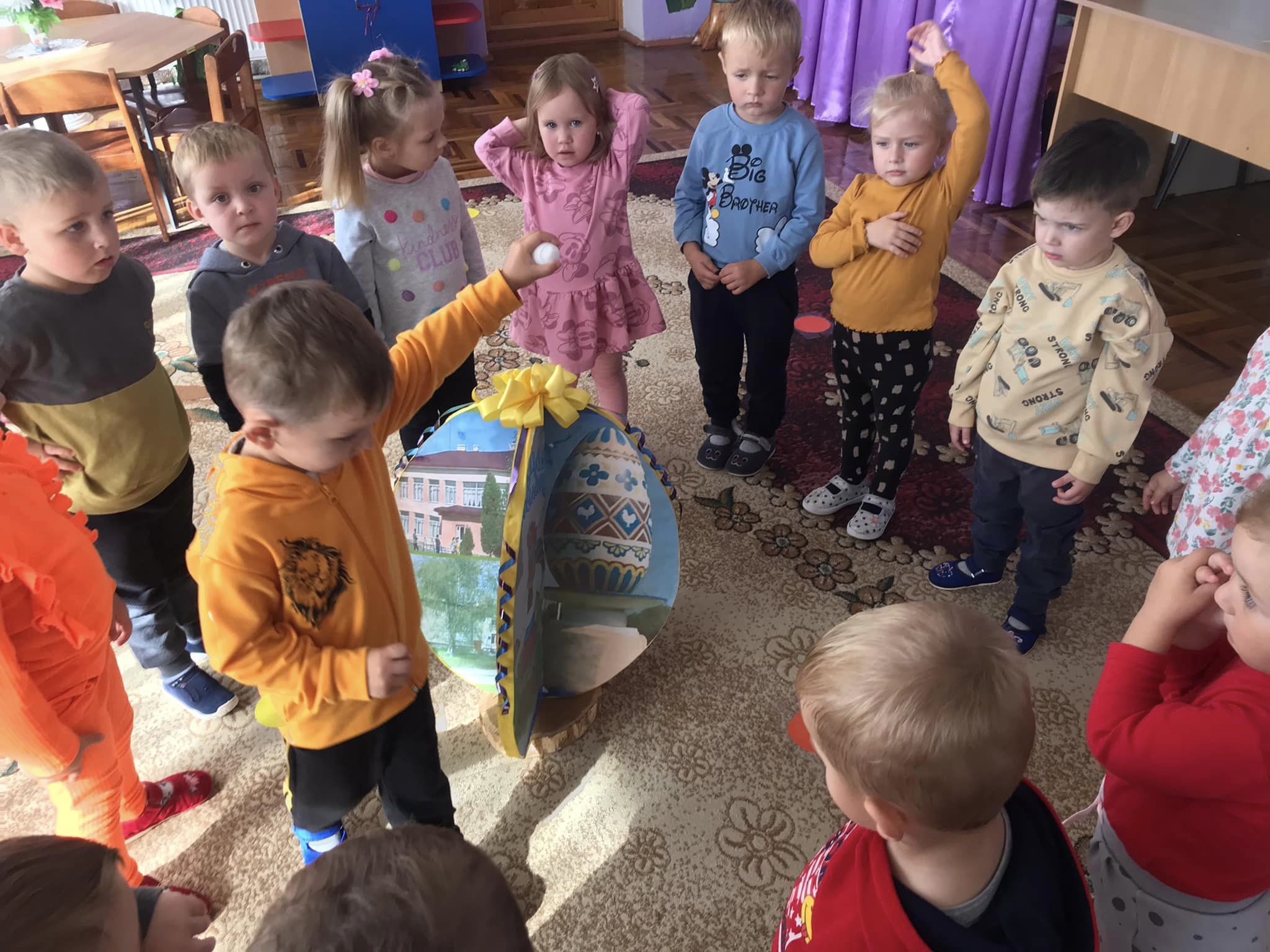 Тож дітки групи молодшого дошкільного віку «Сонечко» провели справжній яєчний день. Зранку їх зустріли веселі яєчка),кожна дитина мала можливість обрати яєчко згідно свого настрою.