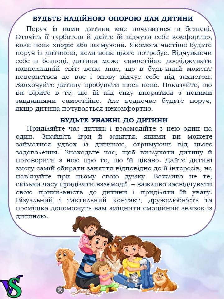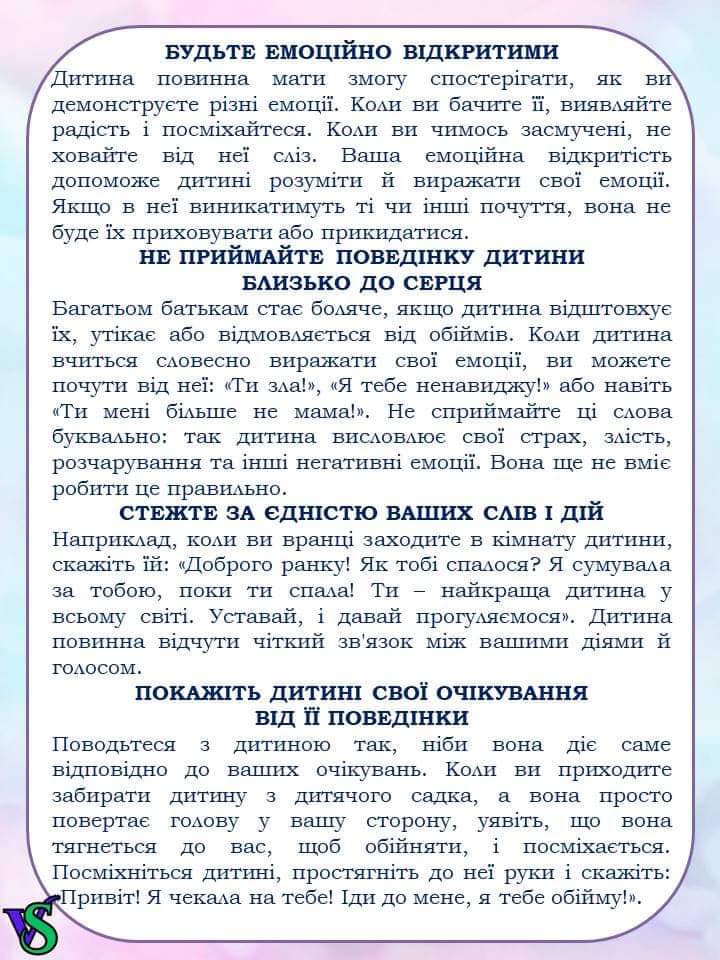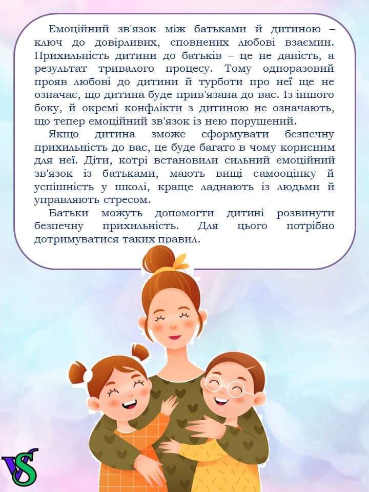 Батькам на замітку “Зміцнюємо емоційний зв’язок з дитиною”.